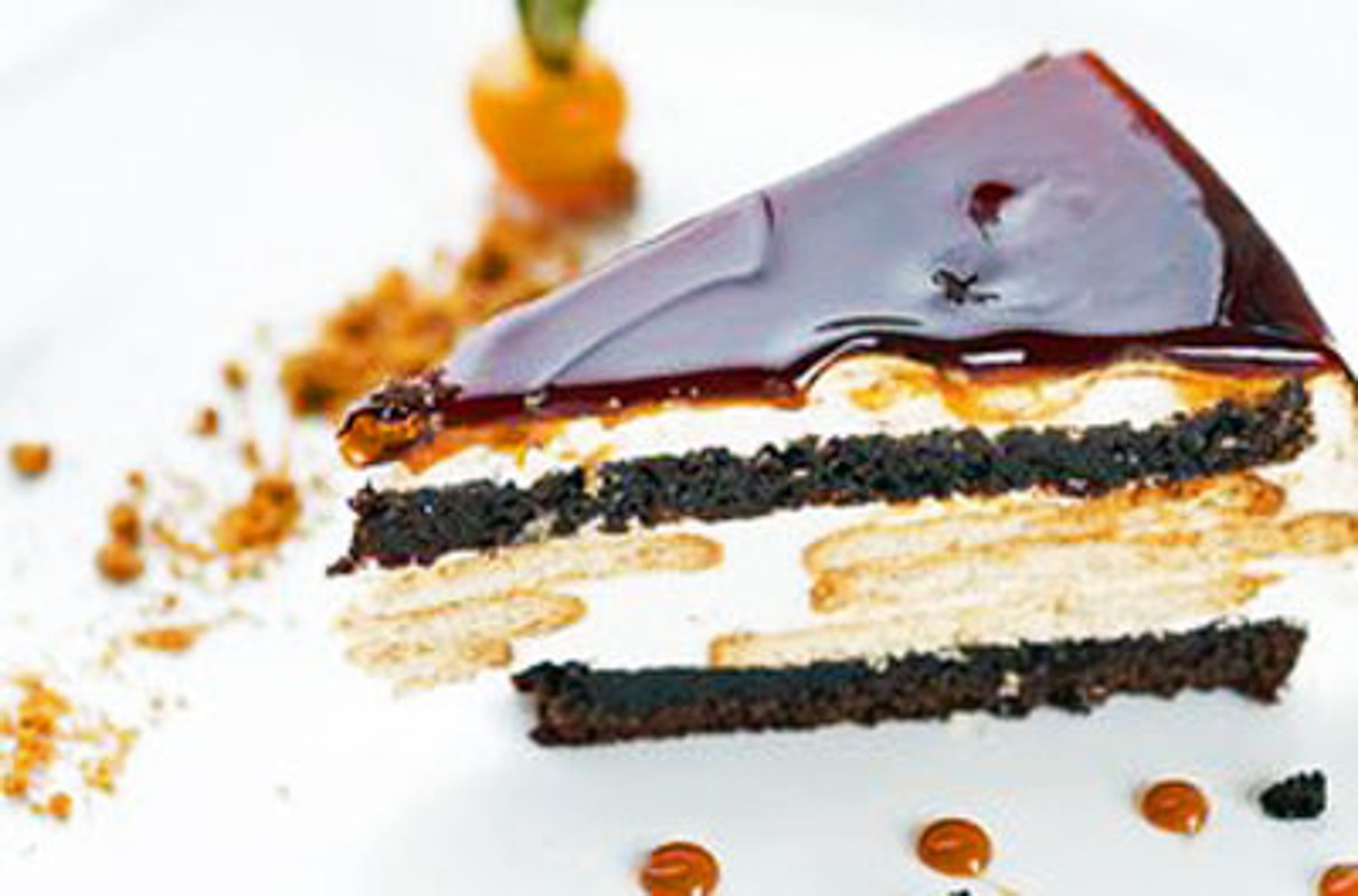 Luego las galletas trituradas se mezclan con la solución de gelatina hasta formar una pasta que se mete a al horno a fuego medio. Dejamos enfriar durante dos horas y añadimos sirope de caramelo. Tendremos lista nuestra tarta de galletas caramelizadas.