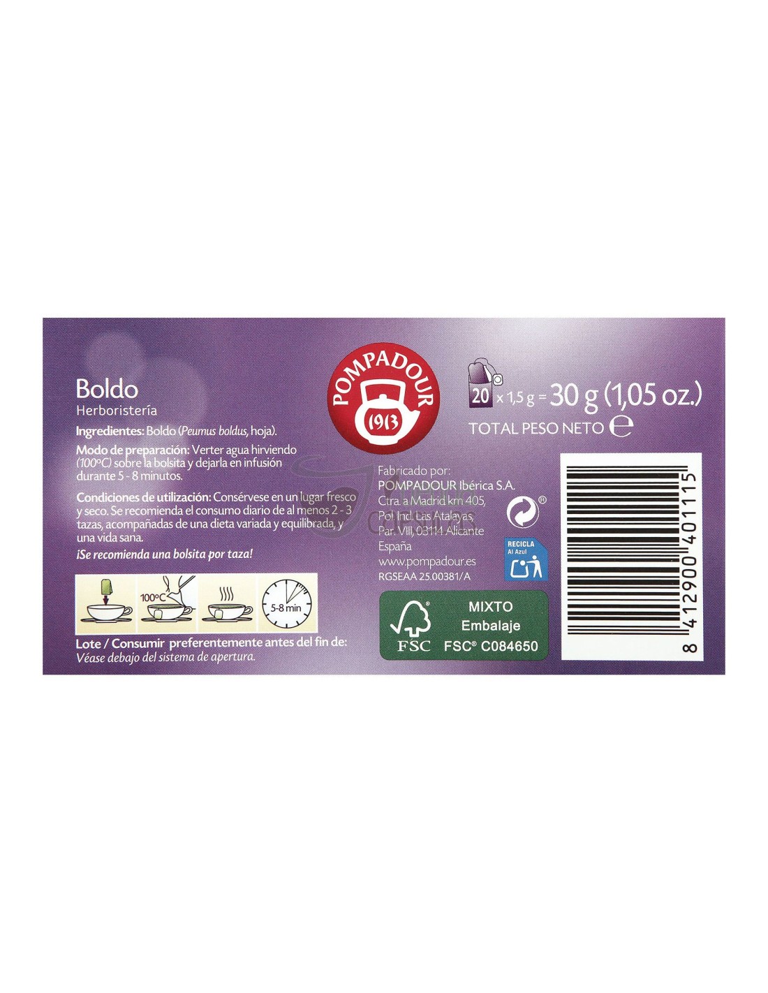 Infusión Boldo Pompadour® (Peumus boldus).
