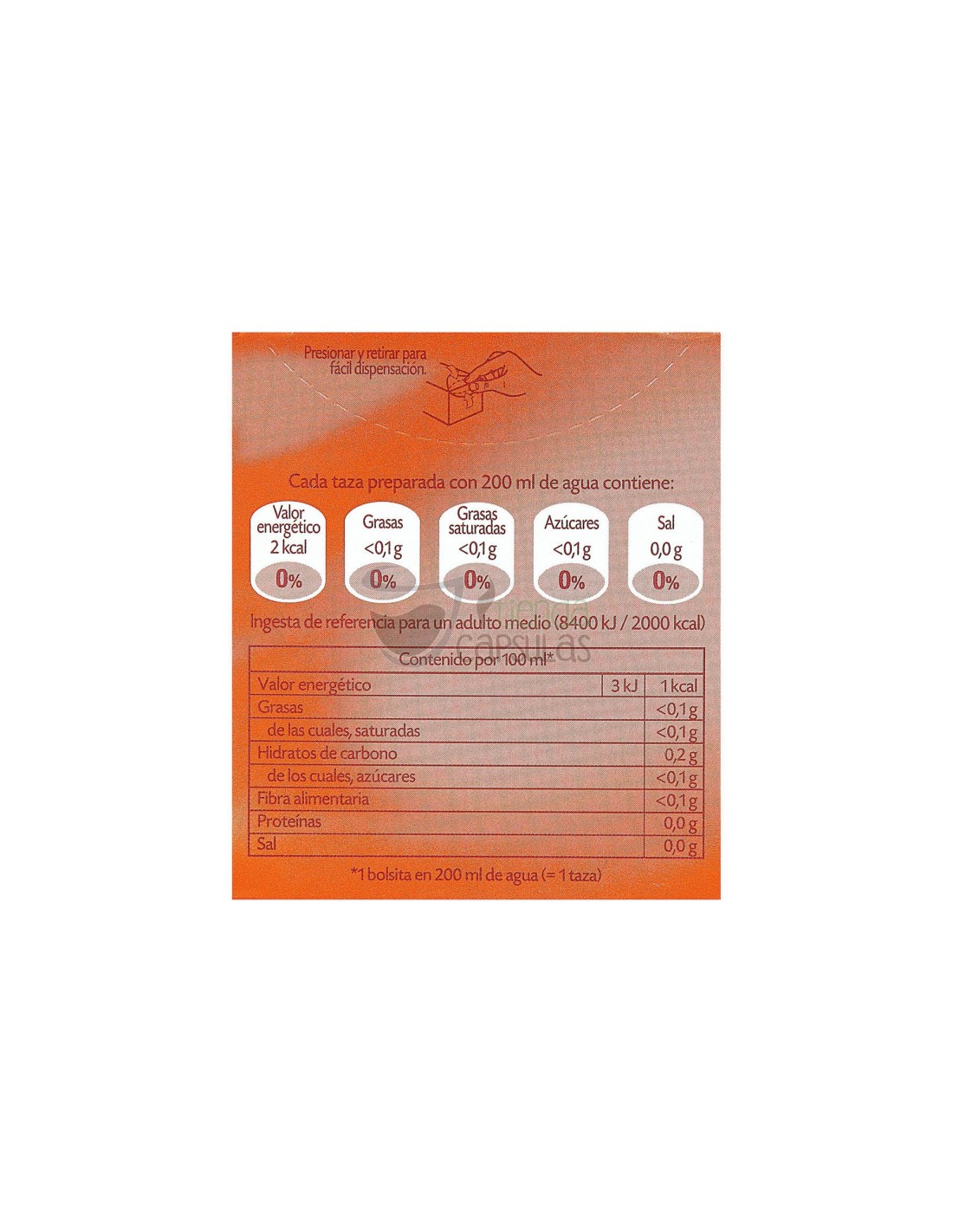 Modo de preparación: Verter agua hirviendo (100º C) sobre la bolsita y dejarla en infusión durante 5 minutos.
