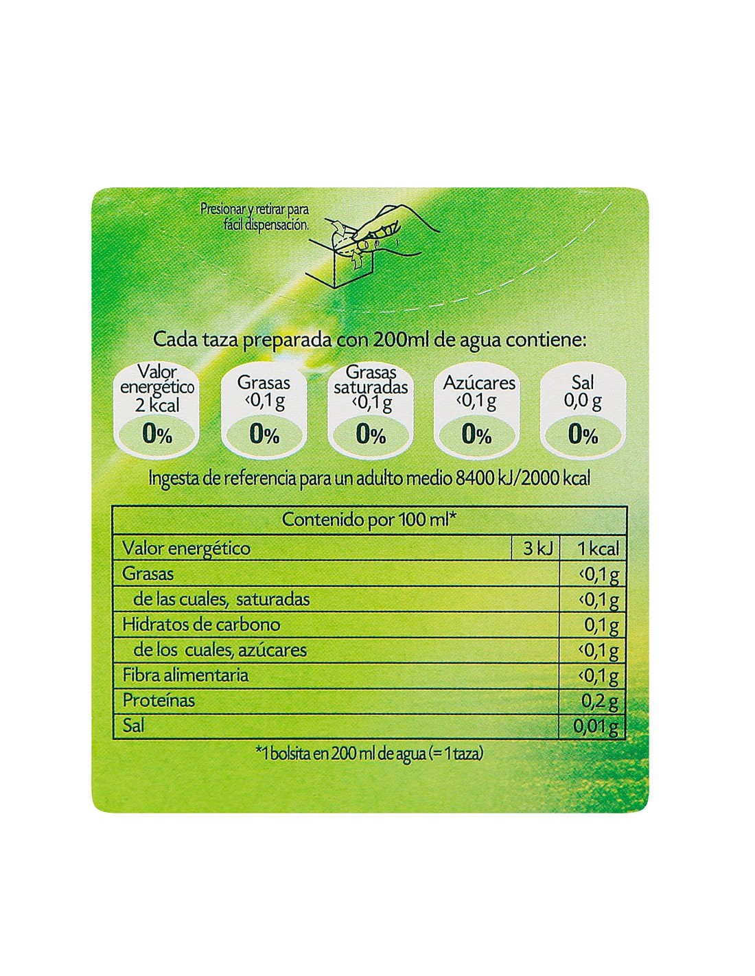 INGREDIENTES: Té verde, polvo molido de té verde Matcha. Este producto es vegano.